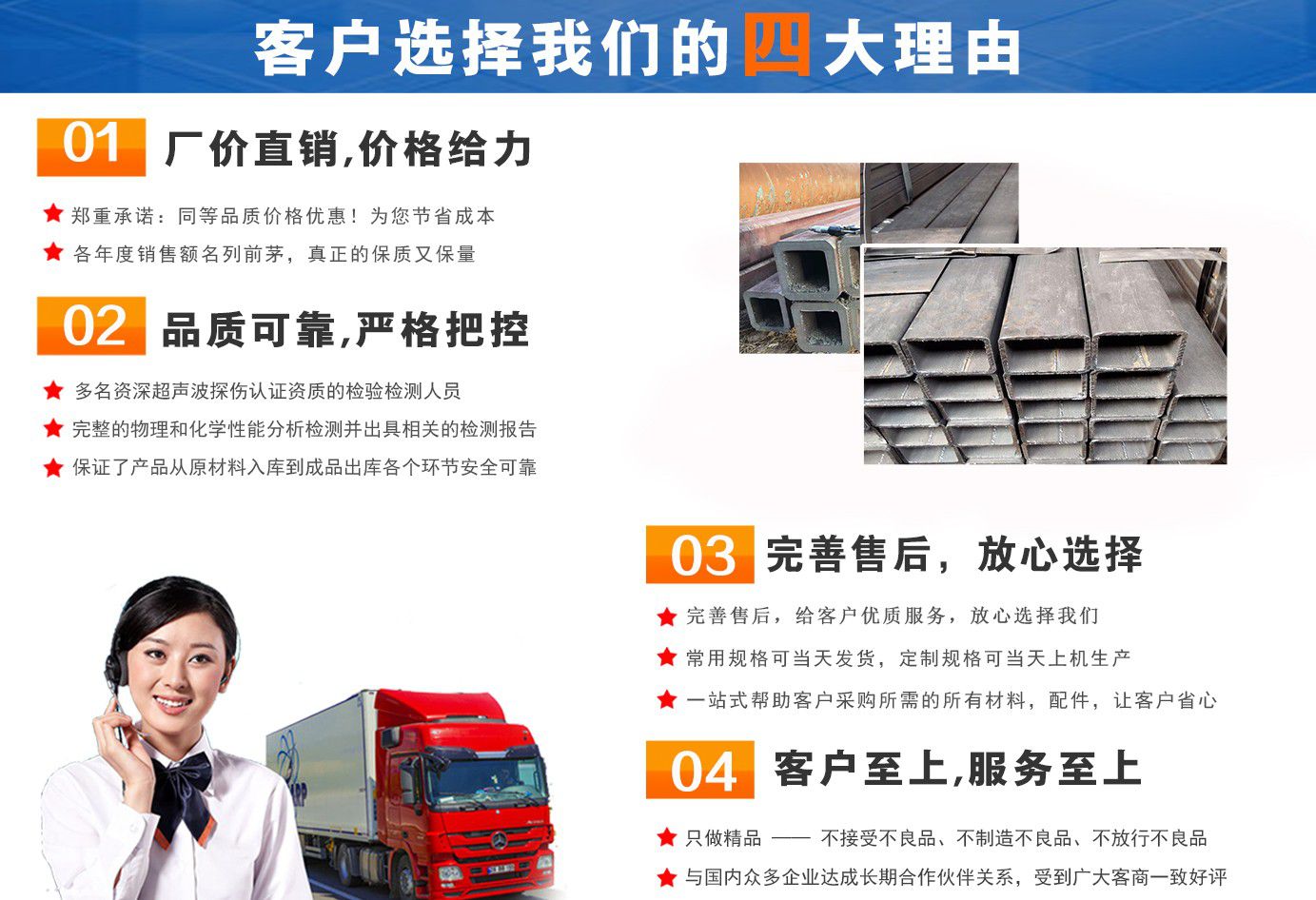 無(wú)錫盛灝特鋼有限公司長(zhǎng)期銷售Q355B方矩管,鍍鋅方矩管,大口徑方矩管,厚壁方矩管,無(wú)縫方矩管等各種方管產(chǎn)品!產(chǎn)品廣泛應(yīng)用于鋼結(jié)構(gòu)建筑(鋼管混凝土、管樁、管桁架,橋梁、海上作業(yè)平臺(tái)、港口碼頭建設(shè)、電視通訊鐵塔、電力鐵塔等鋼結(jié)構(gòu)管)。壓力管道(石油、天然氣、煤漿等輸送)、機(jī)械制輥等領(lǐng)域。  公司自創(chuàng)辦以來(lái),一直堅(jiān)持“誠(chéng)信合作,共同發(fā)展”的經(jīng)營(yíng)理念。  一直以來(lái)我們本著“以誠(chéng)相待,以信為本,互利互惠,共同發(fā)展”的長(zhǎng)期方針,充分發(fā)揮現(xiàn)貨資源優(yōu)勢(shì)為您提供“可靠的產(chǎn)品、過(guò)硬的質(zhì)量、完善的服務(wù)”,歡迎廣大新老客戶前來(lái)洽談業(yè)務(wù)。  公司以“至誠(chéng)至信,雙利雙贏”為根本宗旨,堅(jiān)持科技興企的發(fā)展策略,恪守商規(guī),創(chuàng)新進(jìn)去,贏得聲譽(yù),贏得了市場(chǎng),得到了社會(huì)各階層的認(rèn)可。公司以雄厚的實(shí)力、可靠的質(zhì)量、儲(chǔ)存鋼管門類齊全、庫(kù)存量大之優(yōu)勢(shì),本著守法、守信、創(chuàng)新的理念,打造精品,發(fā)展鋼管多元化品種,滿足客戶各種需求,以低廉的價(jià)格、熱情的服務(wù)面向國(guó)內(nèi)外客戶,歡迎鋼管界同仁加盟!我們?yōu)榭蛻籼峁┲艿降姆?wù) !  公司為客戶提供以下服務(wù)  服務(wù)三保: 保證質(zhì)量、保證時(shí)間、保證數(shù)量。  服務(wù)宗旨: 雄厚的實(shí)力、優(yōu)質(zhì)的產(chǎn)品、低廉的價(jià)格、周到的服務(wù)。  批零兼營(yíng),一支起定。...